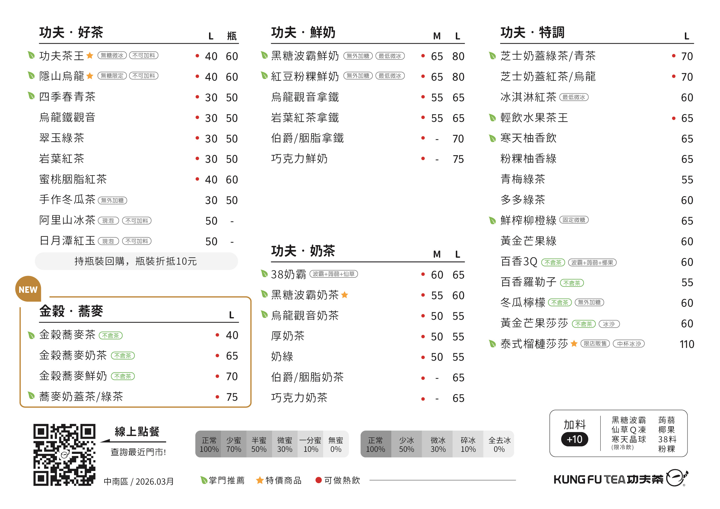 飲品熱量表(2026.03月)